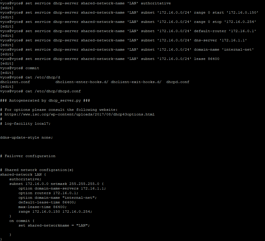 set service dhcp-server shared-network-name 'LAN' subnet '172.16.0.0/24' lease 86400