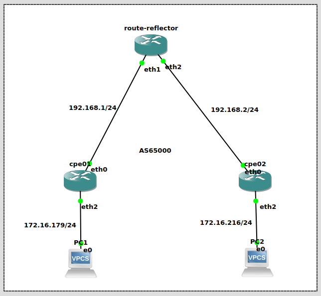 vyos-dup# show running-config Building configuration... Current configuration: ! frr version 7.0.1-20190820-04-g047efd6 frr defaults traditional hostname vyos-dup log syslog informational service integrated-vtysh-config ! router bgp 65000 neighbor 192.168.1.2 remote-as 65000 neighbor 192.168.2.2 remote-as 65000 ! address-family ipv4 unicast neighbor 192.168.1.2 next-hop-self force neighbor 192.168.2.2 route-reflector-client neighbor 192.168.2.2 next-hop-self force neighbor 192.168.2.2 next-hop-self exit-address-family ! line vty
