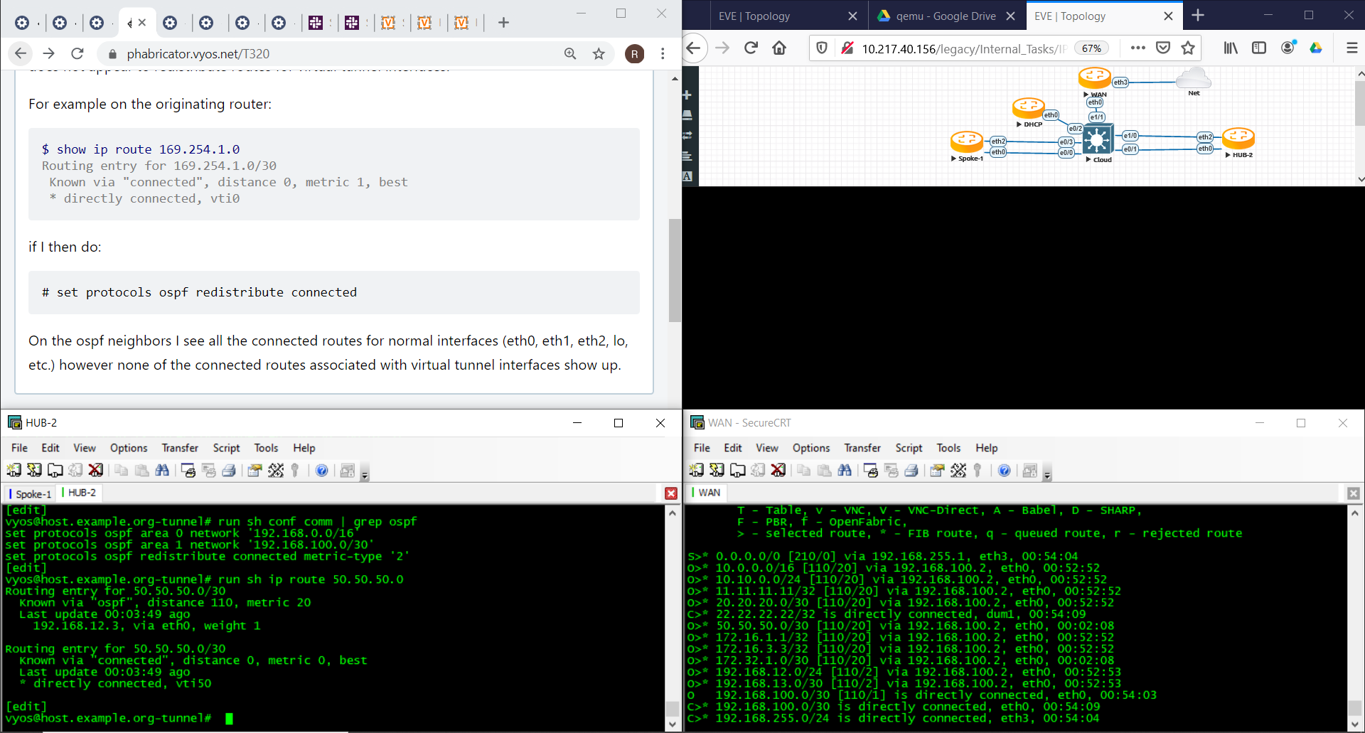 On the ospf neighbors I see all the connected routes for normal interfaces (eth0, eth1, eth2, lo, etc.) however none of the connected routes associated with virtual tunnel interfaces show up.