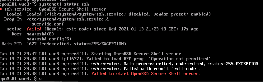 When running SSHd inside a VRF the daemon needs several tries to start successfully as it tries to load some bpf code (according to the systemd log https://bugzilla.redhat.com/show_bug.cgi?id=1813599), but when the service stops, the config is removed and it can no longer start -> DEADLOCK.
