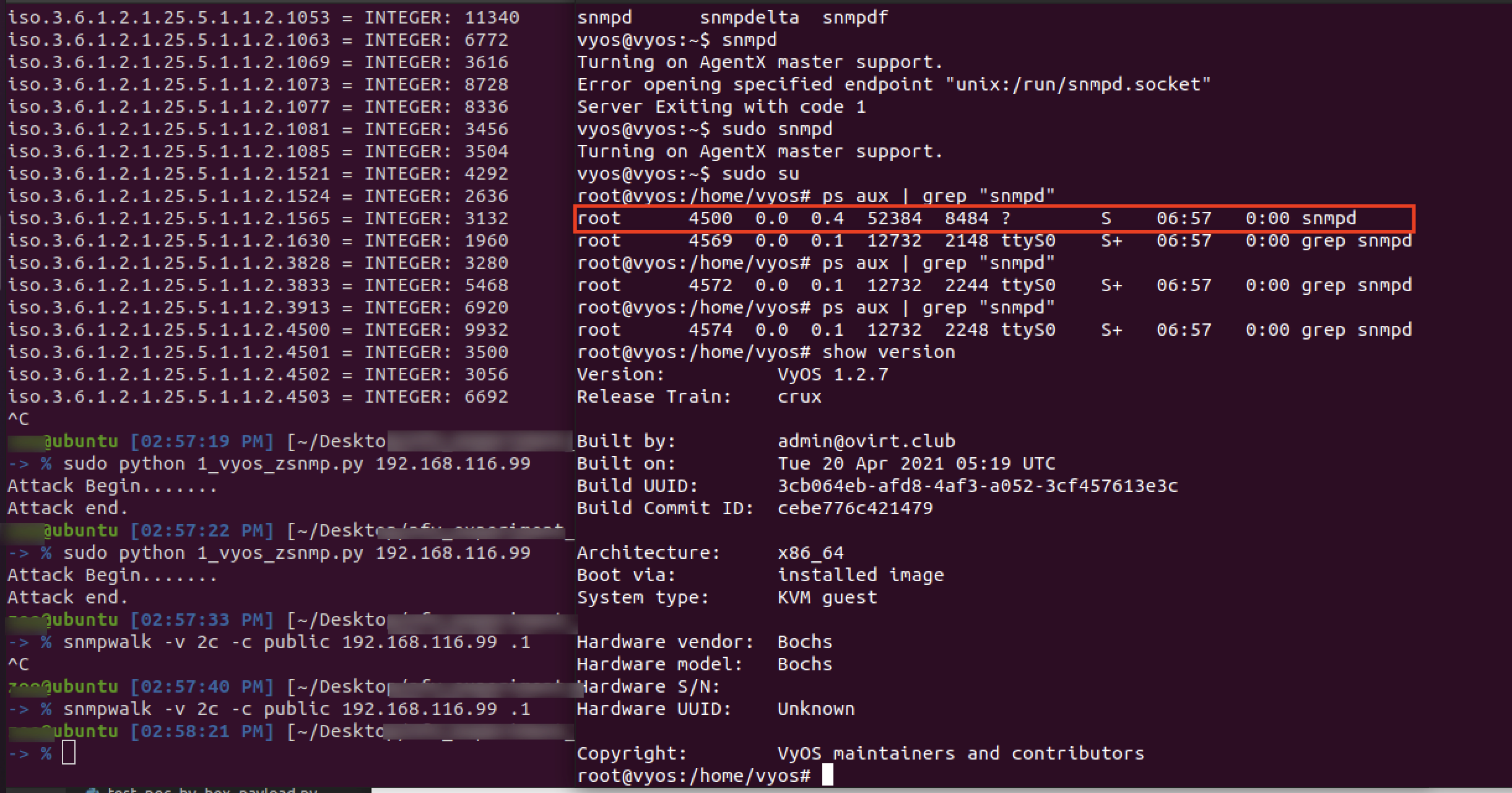 We have replayed the vulnerability in the vyos 1.2.7 device versions. And We perform debugging analysis on this vulnerability version. Please check.