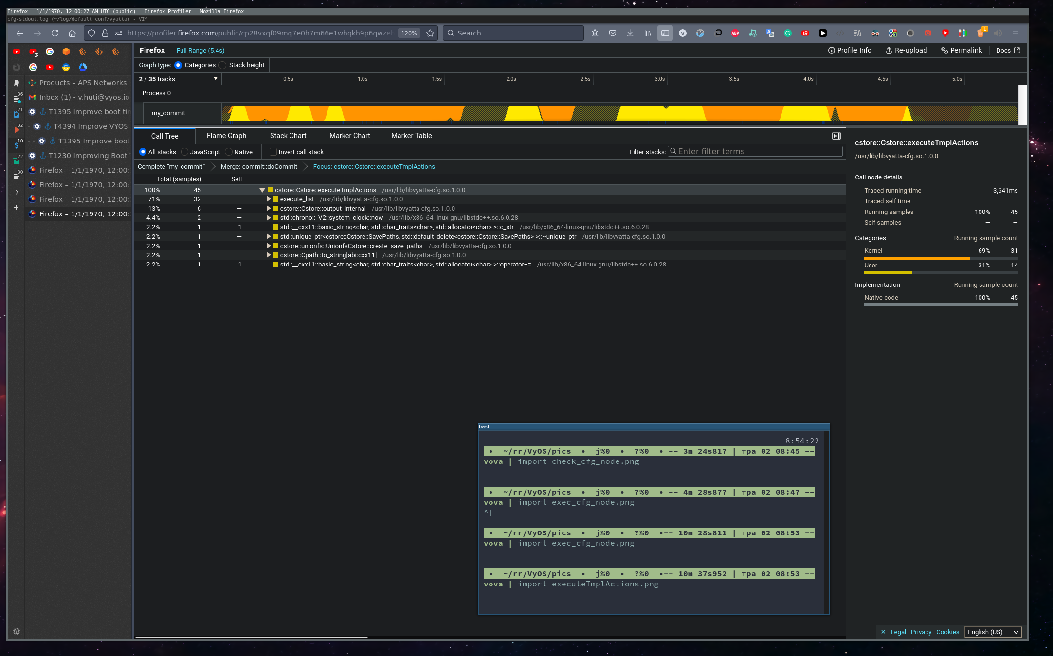 - Analyse using profiler.firefox.com / www.speedscope.app