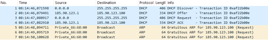 set service dhcp-server listen-interface 'eth1' set service dhcp-server shared-network-name LAN authoritative set service dhcp-server shared-network-name LAN ping-check set service dhcp-server shared-network-name LAN subnet 185.90.123.0/24 lease '1800' set service dhcp-server shared-network-name LAN subnet 185.90.123.0/24 option default-router '185.90.123.1' set service dhcp-server shared-network-name LAN subnet 185.90.123.0/24 option name-server '8.8.8.8' set service dhcp-server shared-network-name LAN subnet 185.90.123.0/24 option name-server '1.1.1.1' set service dhcp-server shared-network-name LAN subnet 185.90.123.0/24 range 0 start '185.90.123.100' set service dhcp-server shared-network-name LAN subnet 185.90.123.0/24 range 0 stop '185.90.123.200' set service dhcp-server shared-network-name LAN subnet 185.90.123.0/24 subnet-id '10'